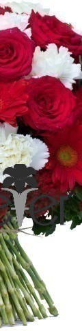 4 Red Roses, 6 Red Carnations, 4 Red Gerbera, 4 White Roses, 6 White Carnations