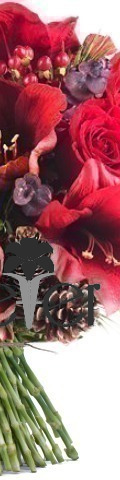 6 x Red Amaryllis, 3 x Red Roses, Red Hypericum Berries, 2 x Pine Cones